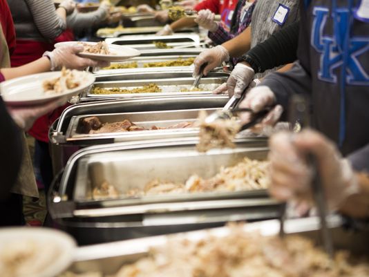 “Well, it’s not really a buffet,“ one of the ladies said. “We can’t actually do a buffet […where people serve themselves…]. We have to have volunteers scoop out the food for each person as they come through the line. If we don’t serve them, they’ll take as much chicken as they can fit on their plate, and then there won’t be enough chicken for everyone.”